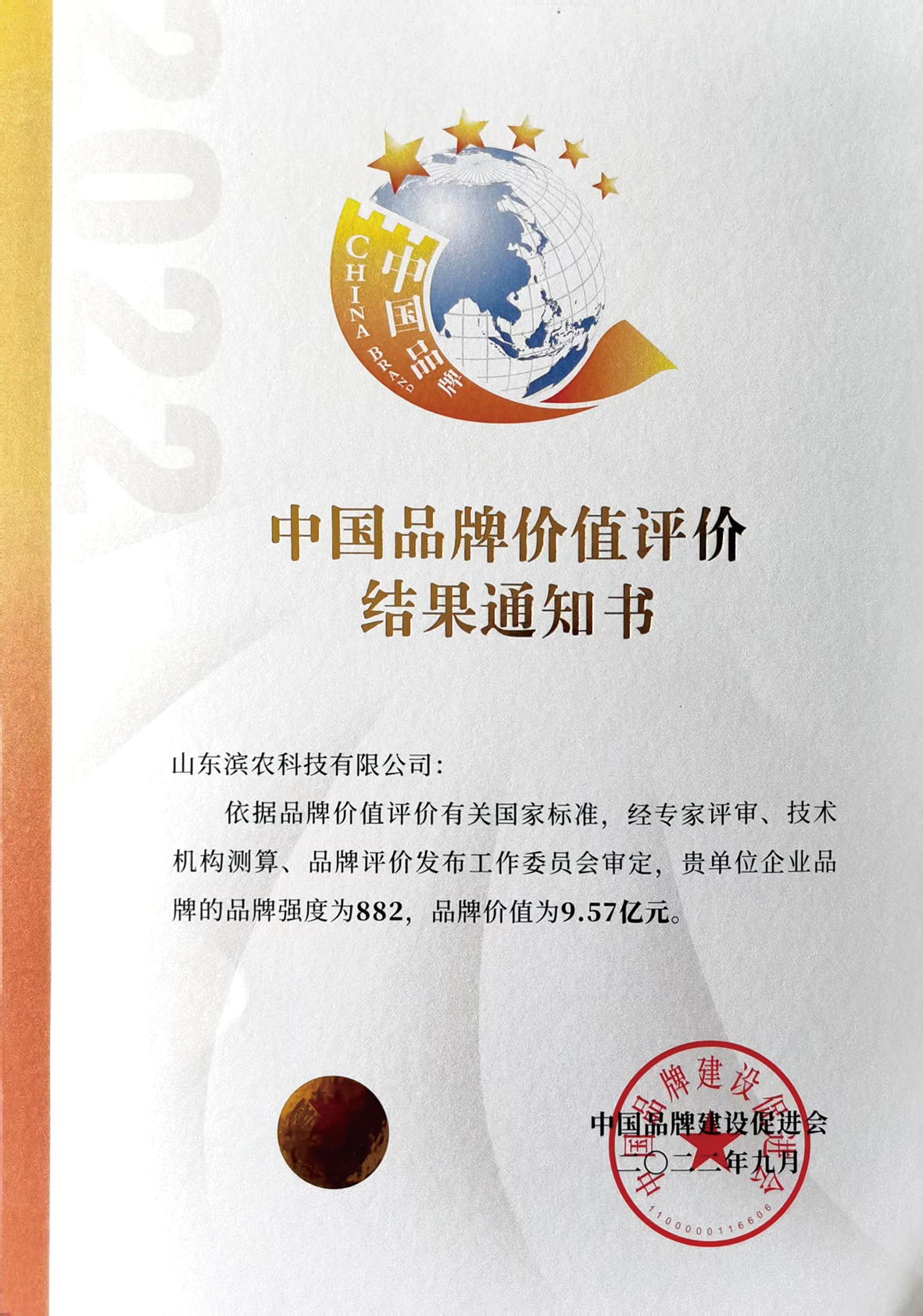 ■2022-11-15 濱農科技榮登“2022中國品牌價值評價信息”榜單