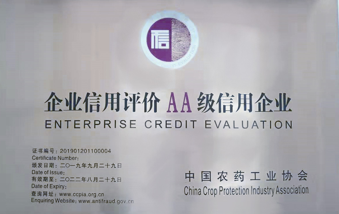 ■2019-10-06 我公司榮獲中國農藥工業協會頒發的“企業信用評價AA級信用企業”
