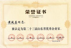 ■2016-08-31 我公司董事長黃延昌獲評第二十三屆山東省優(yōu)秀企業(yè)家