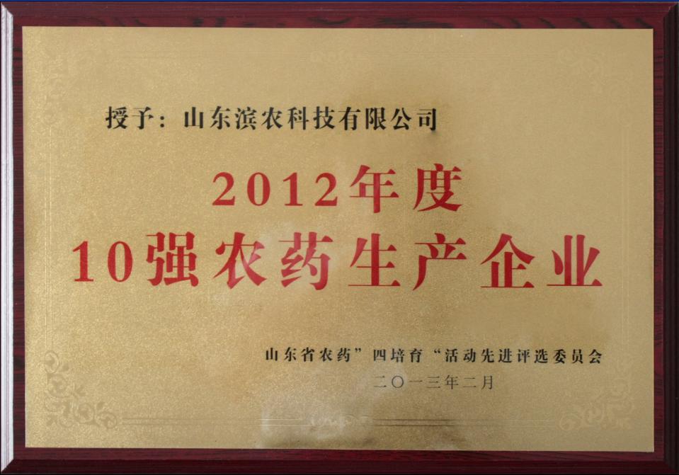 5 月 7 日,由中國農藥工業協會主辦的 2014 農藥行業經濟運行分析會暨 2014 年農藥行業排行榜發布會在安徽合肥隆重召開。會上,2014 年中國農藥百強企業和制劑 30 強企業榜單重磅出爐。濱農科技以 23.58 億元的銷售額位居百強榜單第九位。