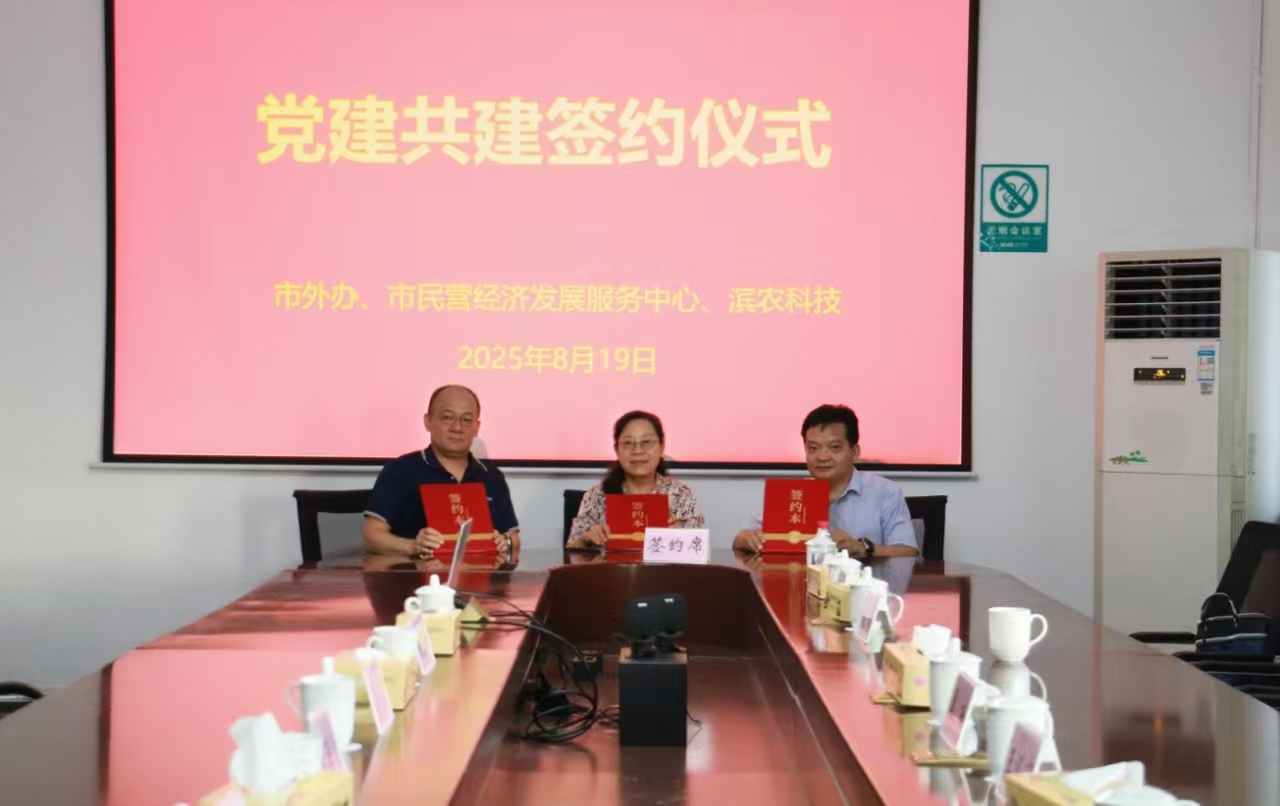 8月19日,濱州市外辦、市民營中心與濱農(nóng)科技聯(lián)合開展“黨建共建助企創(chuàng)世界,同心同向為企鑄心安”惠企服務活動,并舉行黨建共建簽約儀式。市外辦黨組書記、主任裴梅,市民營經(jīng)濟發(fā)展服務中心黨組副書記、副主任王義中,市外辦、市民營中心黨員干部代表出席;我公司董事長李華及國際事業(yè)部、人力資源部、事業(yè)服務部相關負責人熱情接待。