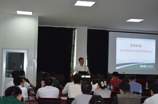 會(huì)議由采購部經(jīng)理王銀鋒主持,副總經(jīng)理閆勇致歡迎詞,就國內(nèi)外原藥近幾年的現(xiàn)狀及未來發(fā)展趨勢做了詳細(xì)分析,并指出了今后原藥市場發(fā)展的方向。原藥部經(jīng)理孫朝星為來賓詳細(xì)介紹了濱農(nóng)的發(fā)展歷程,近幾年國內(nèi)外市場齊頭并進(jìn)蓬勃發(fā)展的現(xiàn)狀。供應(yīng)商代表京博農(nóng)化科技股份有限公司總經(jīng)理戴榮華、采購商代表山東三農(nóng)生物科技有限公司董事長吳文廷結(jié)合與濱農(nóng)多年的合作情況,做了典型發(fā)言。
